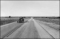 While the importance of Route 66 to emigrating "Dust Bowlers" during the depression years has been widely publicized. less is known about the importance of the highway to those who opted to eke out their living within the devastated economies of Kansas, Oklahoma, West Texas, and New Mexico. During this time, U.S. Highway 66 and other major roads in America were integrally linked to President Roosevelt's revolutionary New Deal program for work relief and economic recovery. Road improvements and maintenance work was a central feature of the New Deal's Civilian Conservation Corps (CCC) and Works Project Administration (WPA) programs. Erom 1933 to 1938 thousands of unemployed male youths from virtually every state were put to work as laborers on road gangs. As a result of this monumental effort, the Chicago-to-Los Angeles highway was reported as "continuously paved" in 1938. In the final analysis, Route 66 affected more Americans on federal work relief than people who used it during the famous exodus to California.